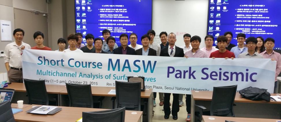 지난달 서울대에서 Park Seismic LLC가 한국내 처음으로 개최한 MASW 단기교육에 참가해주신 여러분들께 감사드립니다. 학교와 기업, 연구소및 정부기관등 다양한 분야에서 참석하셔서 놀라울 정도의 깊은 관심과 미래활용계획에 대한 논의와 문의에 깊히 고무되었습니다.